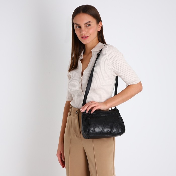 Сумка женская на одно плечо, на молнии, цвет чёрный