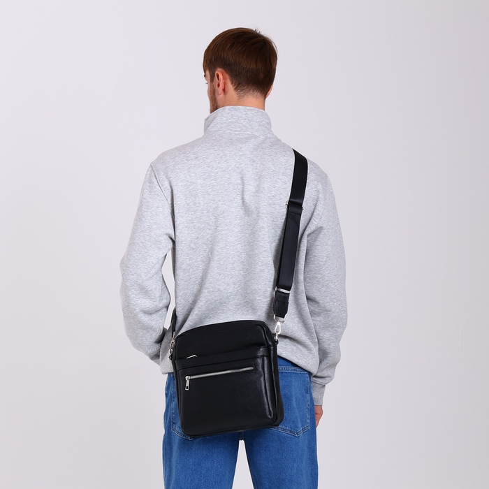 Сумка мужская через плечо TEXTURA, искусственная кожа, цвет чёрный