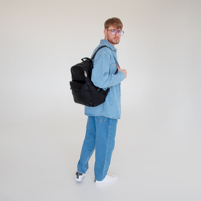 Сдержанный чёрный цвет подчёркивает универсальность рюкзака, делая его идеальным для различных ситуаций — от офисных будней до прогулок по городу.