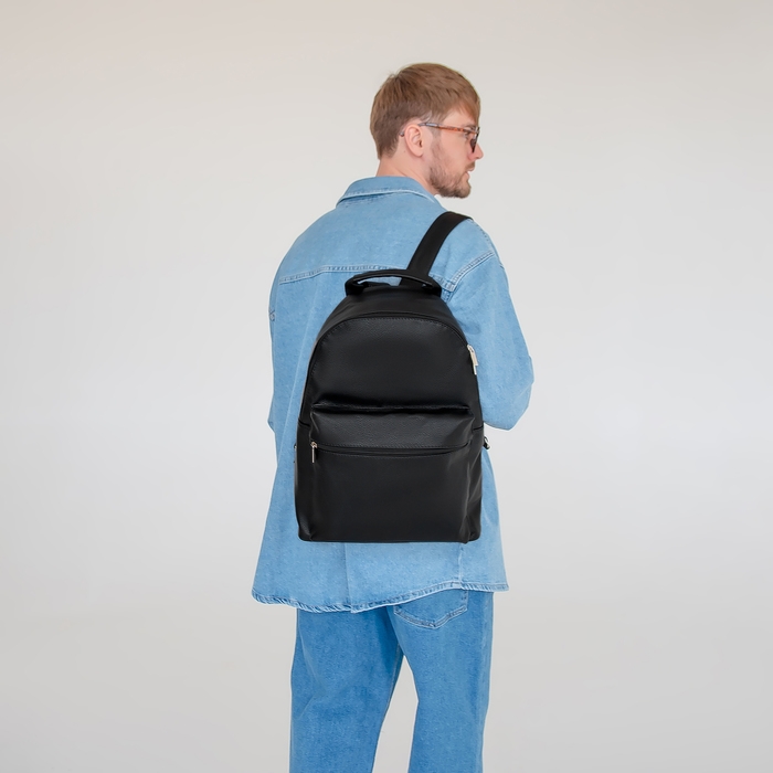 Рюкзак городской, TEXTURA из искусственной кожи на молнии, наружный карман, цвет чёрный