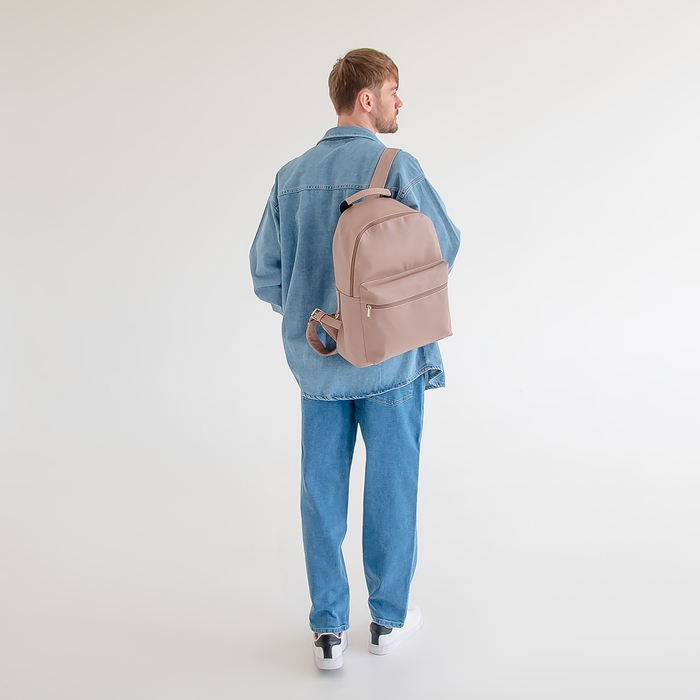 Рюкзак городской TEXTURA из экокожи на молнии, наружный карман, цвет бежевый