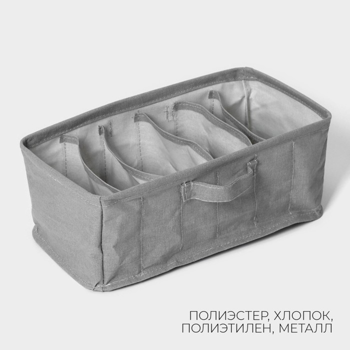 Органайзер для хранения белья LaDо́m, 6 ячеек, 32×17×12 см, цвет серый