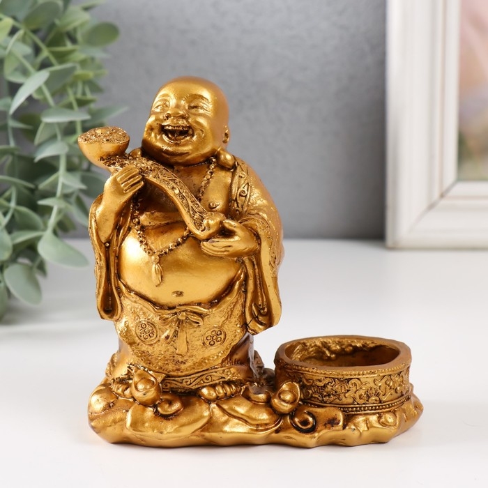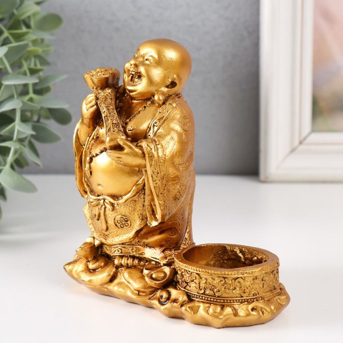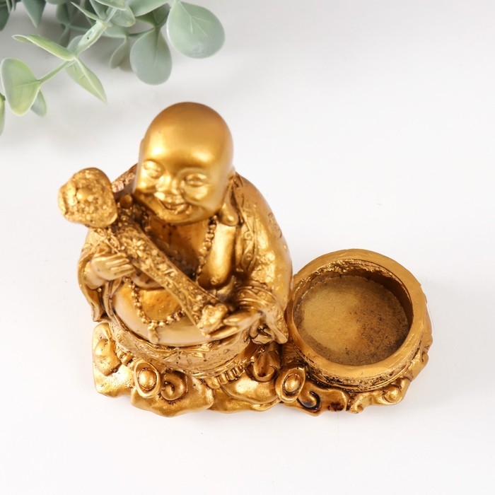 Сувенир полистоун подсвечник на 1 свечу d=3,7 см "Денежный Хотей" 12х6х12 см