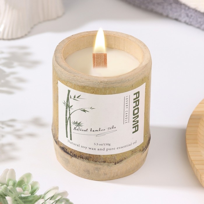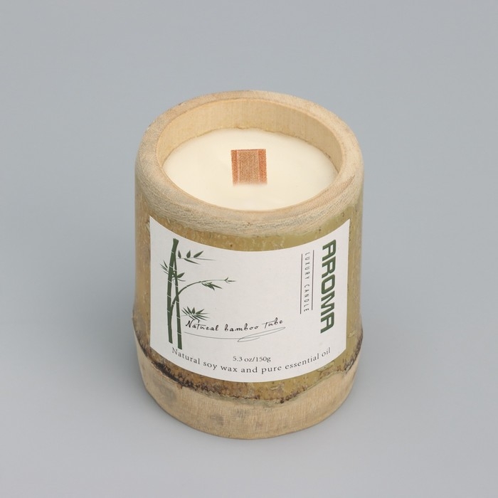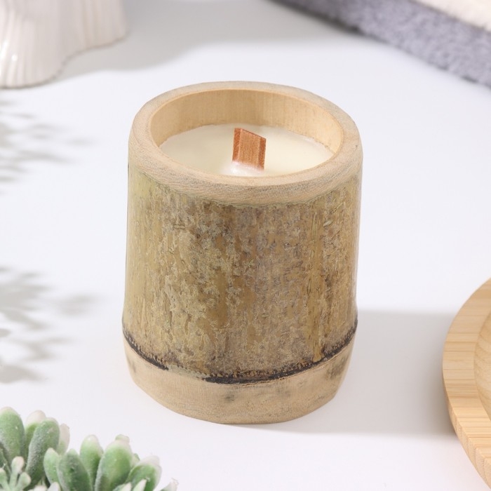 Свеча ароматическая в бамбуке "Душистая гардения", соевый воск, 25ч, 150 гр, 8,5х8 см