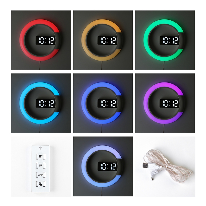 Часы электронные настенные: 7 режимов подсветки, будильник, термометр, 30.5 х 3.5 см
