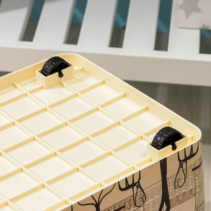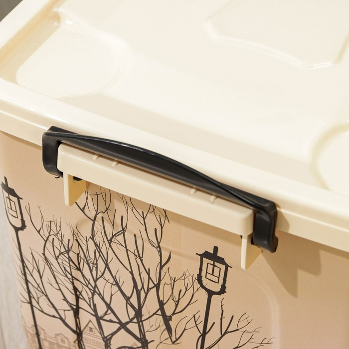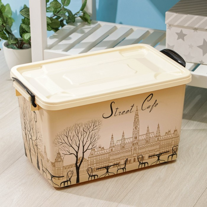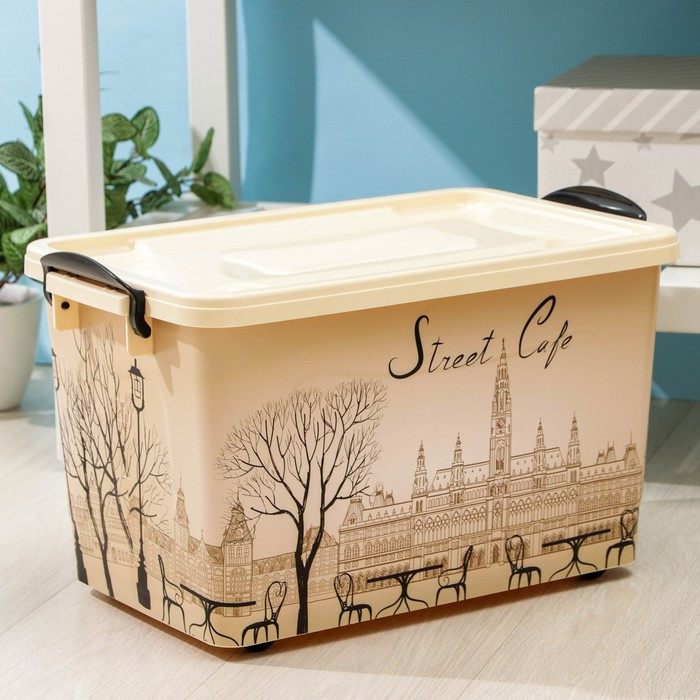 Контейнер для хранения с крышкой «Уличное кафе», 35 л, 50,5×31,5×28 см, на колёсиках, цвет слоновая кость