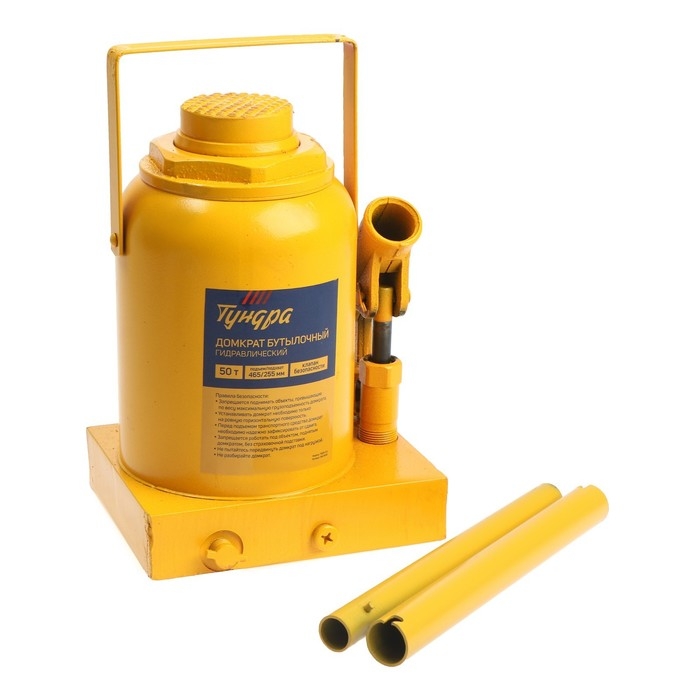 Домкрат бутылочный гидравлический ТУНДРА, второй клапан, подъем/подхват 465/255 мм, 50 т