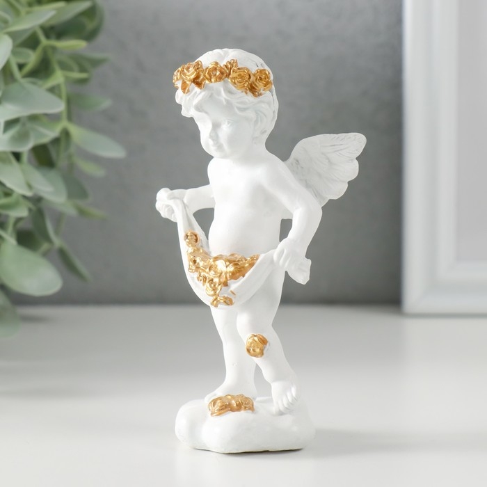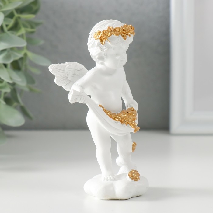 Сувенир полистоун "Белоснежный ангел рассыпает золотые розочки" 6,5х4х11 см