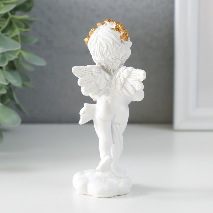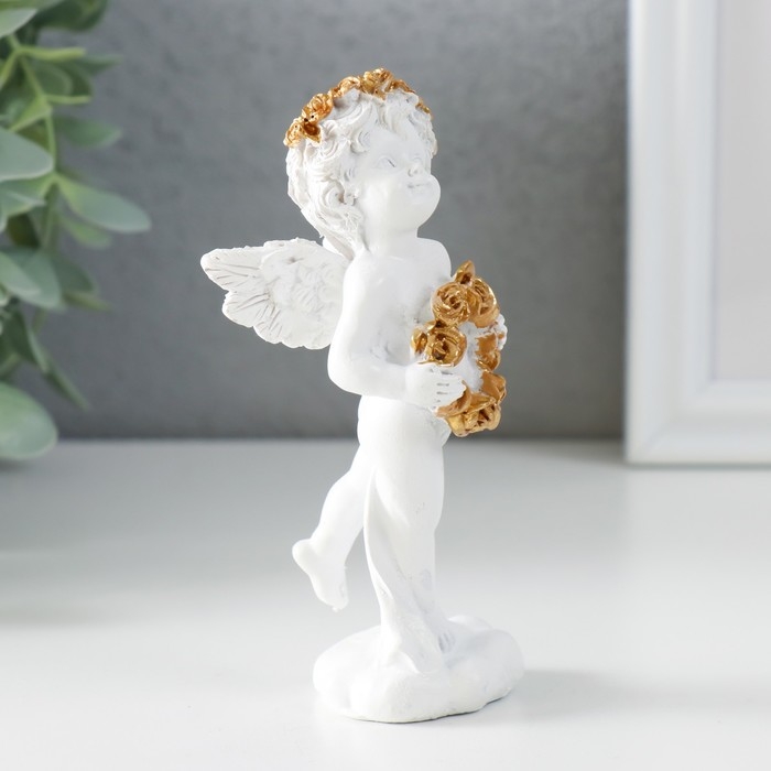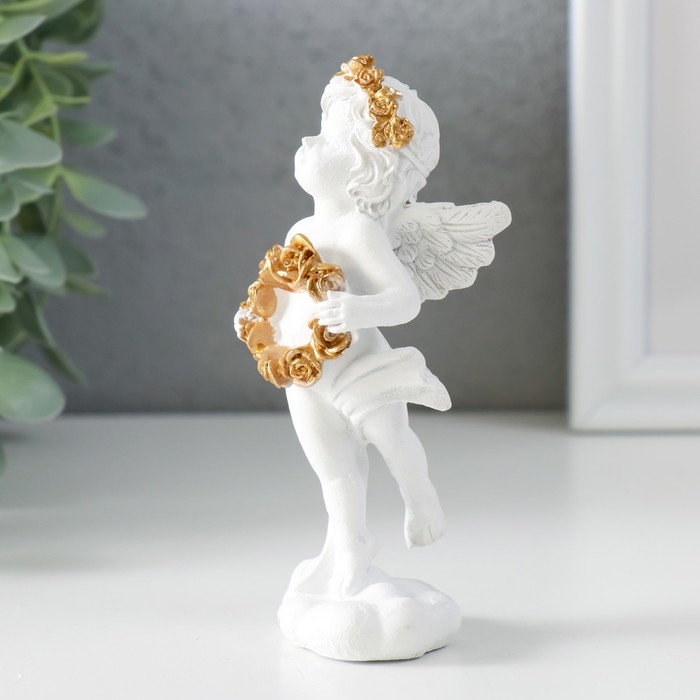 Сувенир полистоун "Белоснежный ангел с венком из золотых роз" 5х4,5х12 см