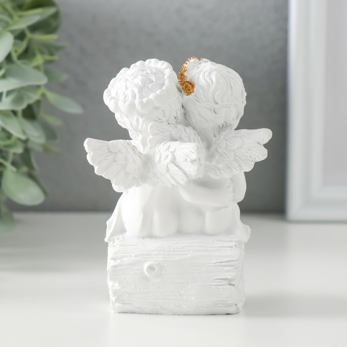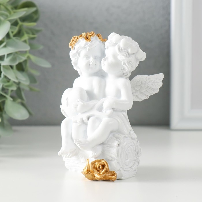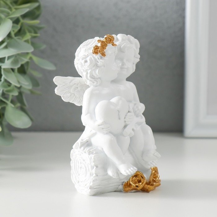 Сувенир полистоун "Белоснежные ангелочки на брёвнышке - сердце и ключик" 7,5х7х10,5 см