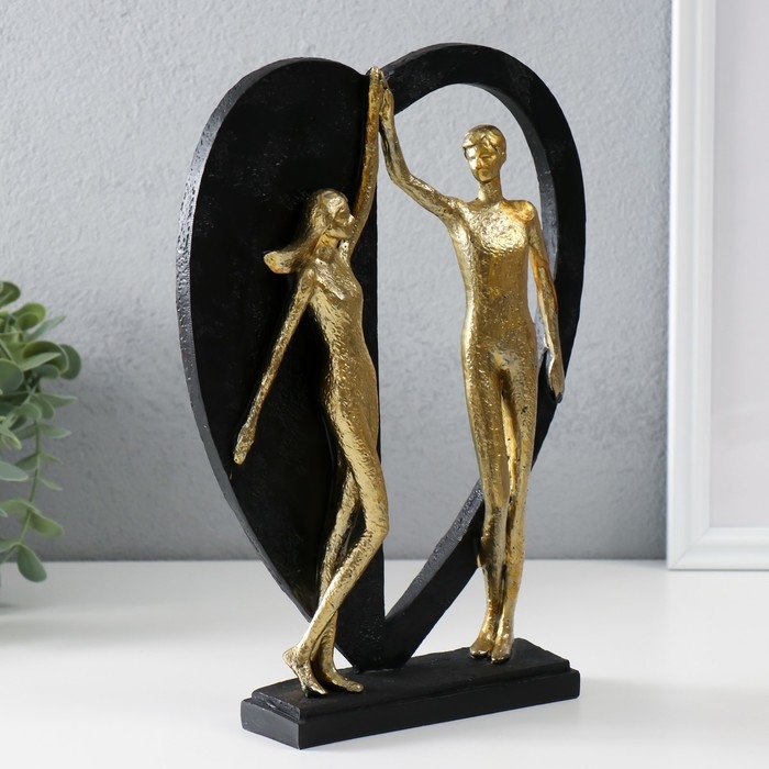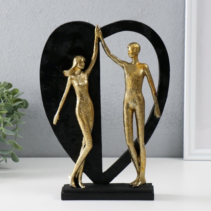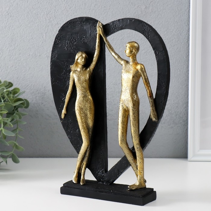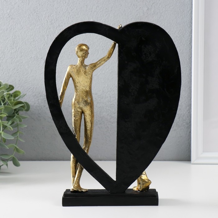 Сувенир полистоун "Влюблённые у большого сердца" золото с чёрным 20х4,5х27,5 см