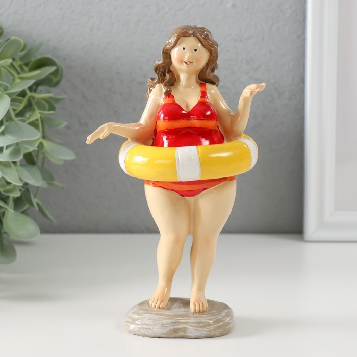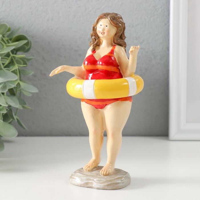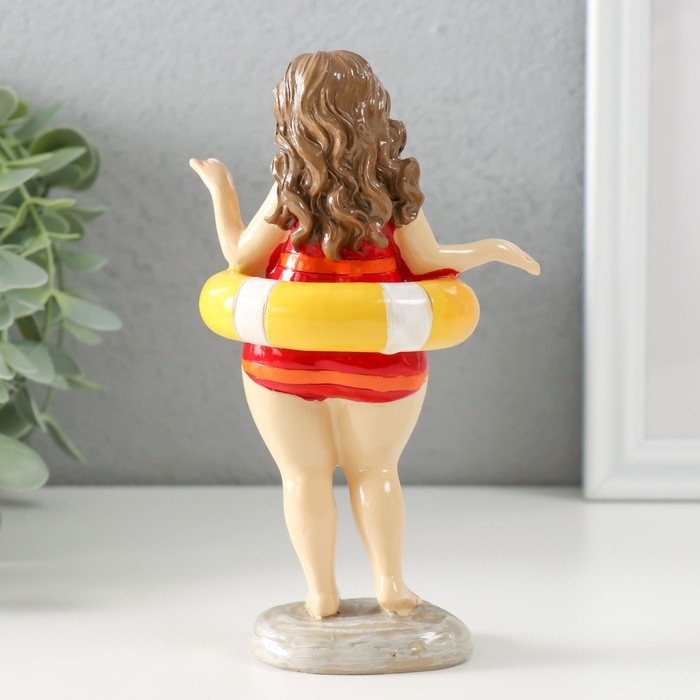 Сувенир полистоун "Пышечка в полосатом купальнике с надувным кругом" 9х6,5х15,5 см