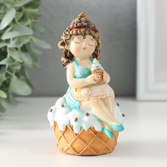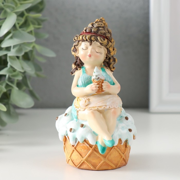 Сувенир полистоун "Пышка-малышка с мороженым на кексике" 7,5х6х11 см