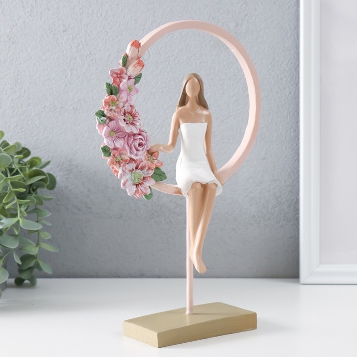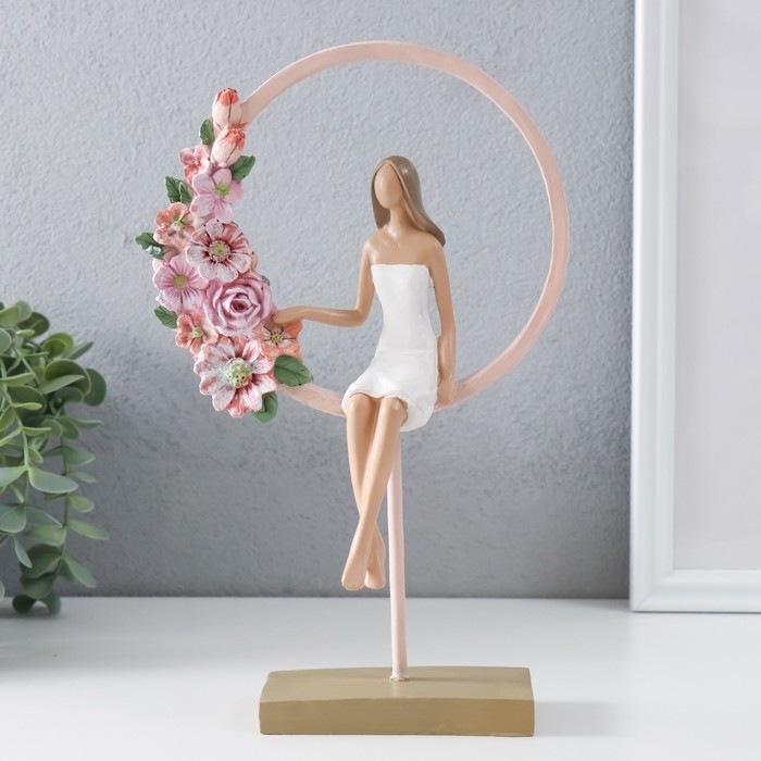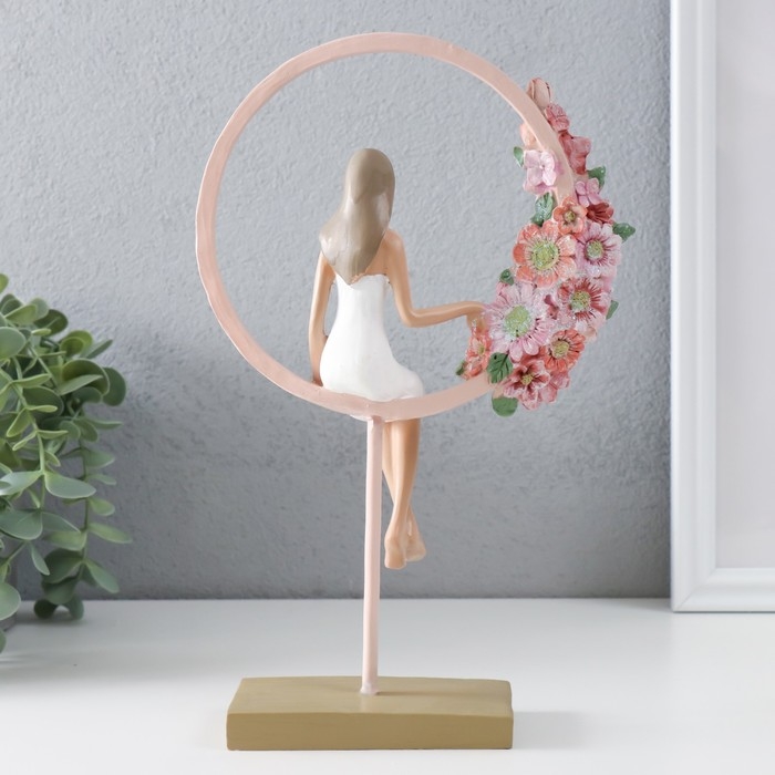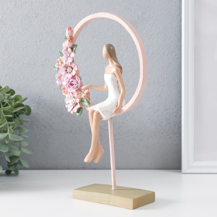 Сувенир полистоун "Девушка сидит в розовом кольце с цветами" 16х6х25,5 см