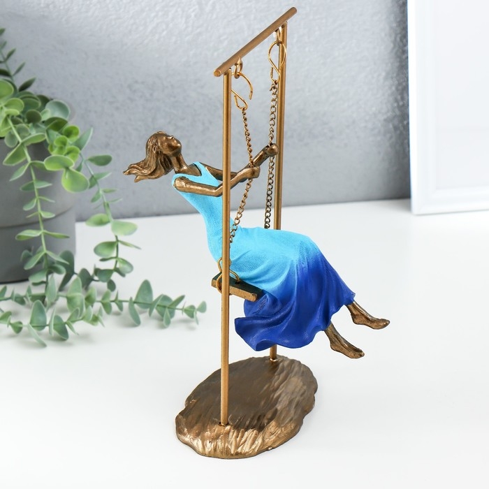 Сувенир полистоун "Девушка в небесно-голубом платье на качелях" бронза 16х11х26 см
