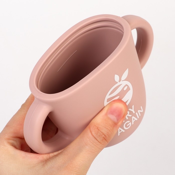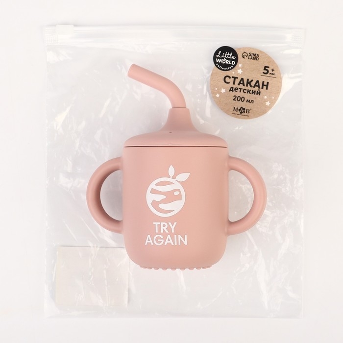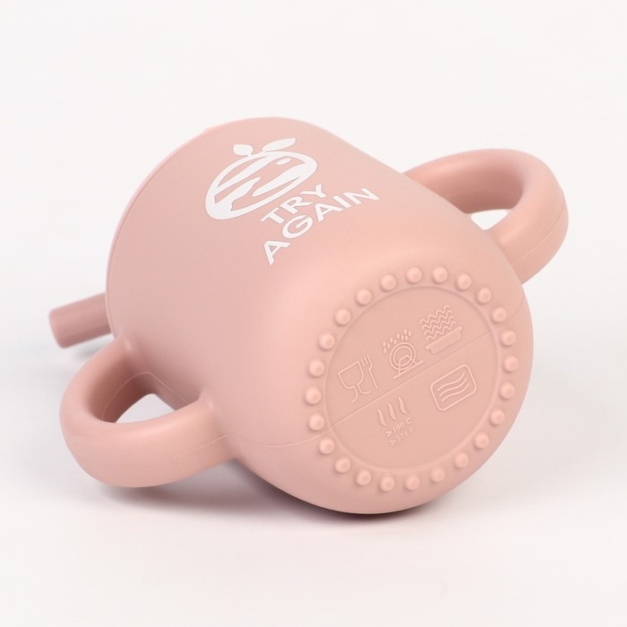 Поильник с трубочкой детский силиконовый «Try again», 200 мл., с ручками, цвет розовый