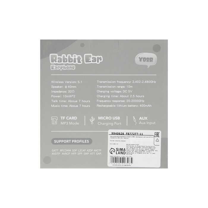Наушники беспроводные Y08R, накладные, детские, BT 5.1, подсветка, 400 мАч, чёрные