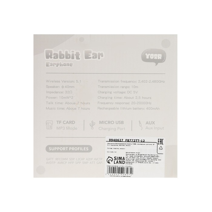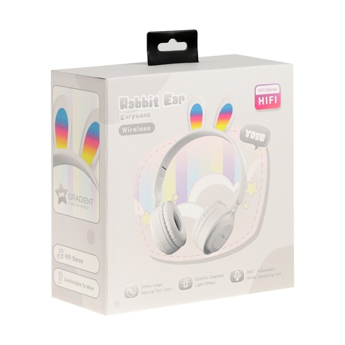 Наушники беспроводные Y08R, накладные, детские, BT 5.1, подсветка, 400 мАч, белые
