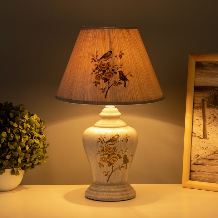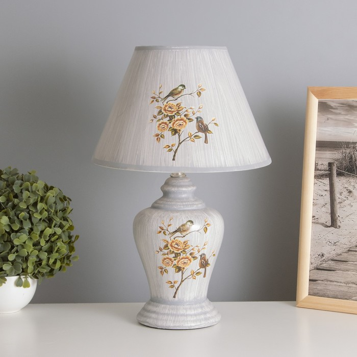 Лампа настольная "Птица в цветочном саду" серая Е14 220В 35,5х24,5х24,5 см
