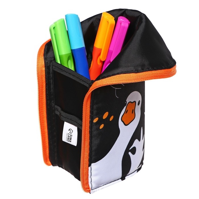 Пенал имеет оптимальный размер и вмещает в себя стандартный набор канцелярских принадлежностей для школы и творчества, в том числе линейку до 20 см.