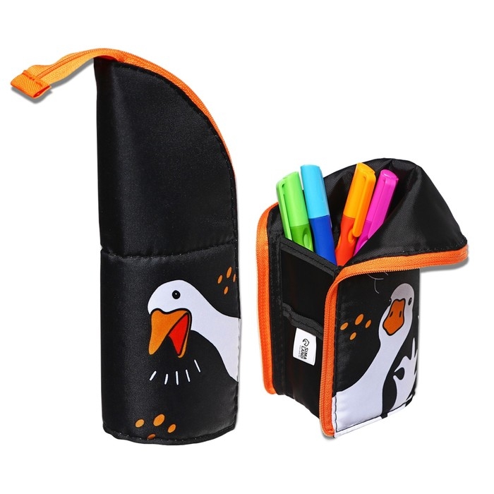 Пенал тубус-подставка, 85 х 210 х 65 мм, мягкий, тканевый, Calligrata, ПМО 12-20 "Гуси"