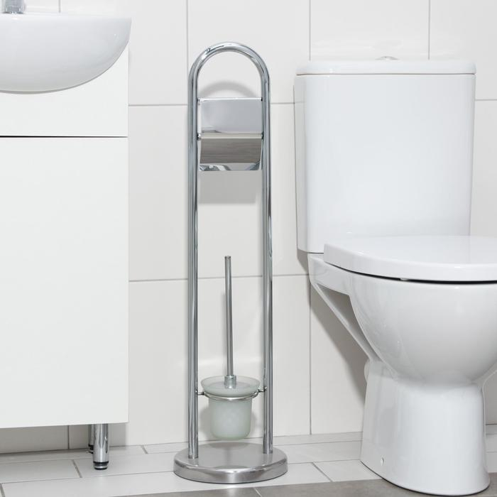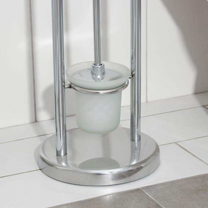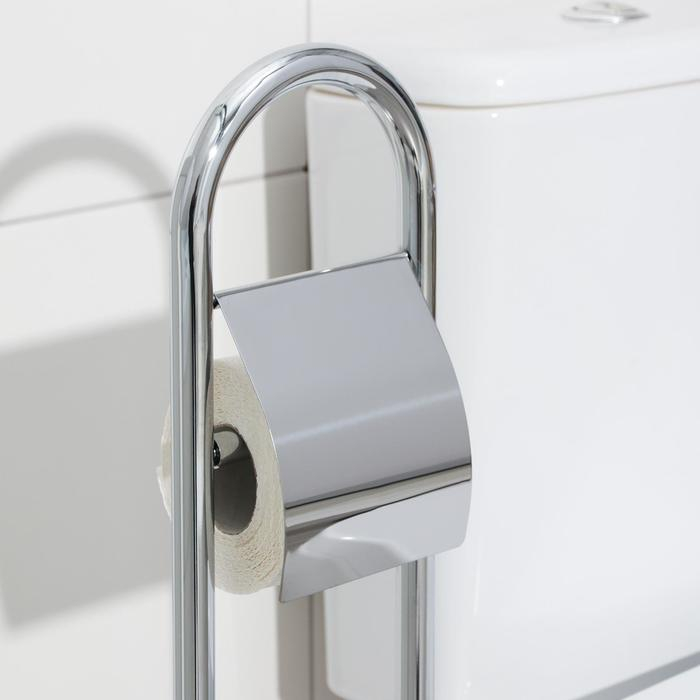Ёршик для унитаза с подставкой напольный, 22×22×82 см, с держателем для туалетной бумаги, цвет хром