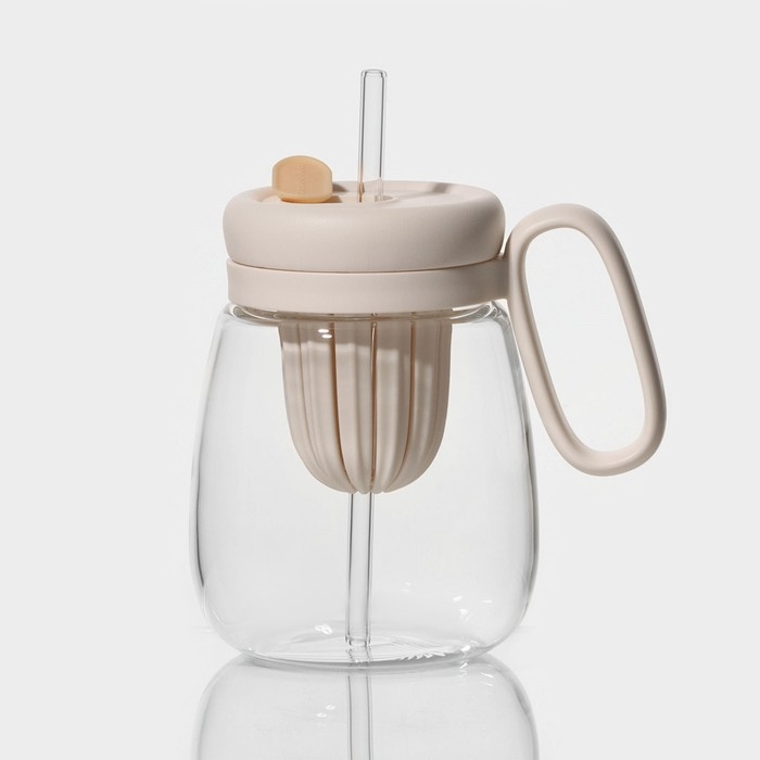 Кружка стеклянная с крышкой и трубочкой «Бьорн», 850 мл