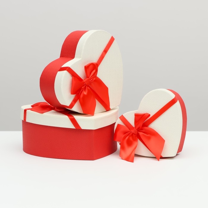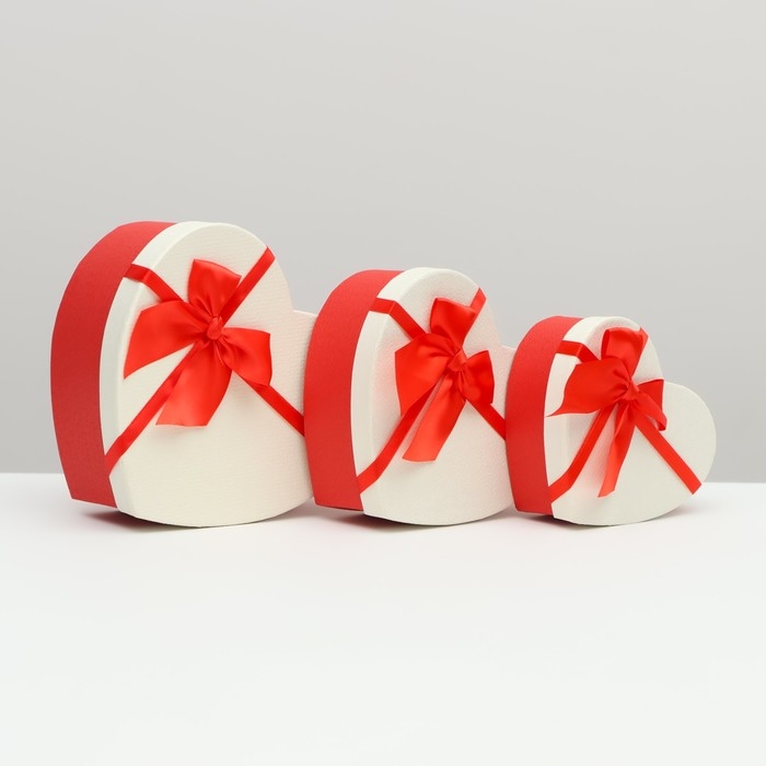Набор коробок 3 в 1 сердца "Красный бант", 22 x 20 x 9; 19 x 17 x 7,5; 16 x 13,5 x 6 см