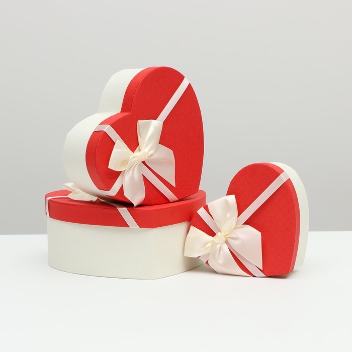 Набор коробок 3 в 1 сердца "Белый бант", 22 x 20 x 9; 19 x 17 x 7,5; 16 x 13,5 x 6 см