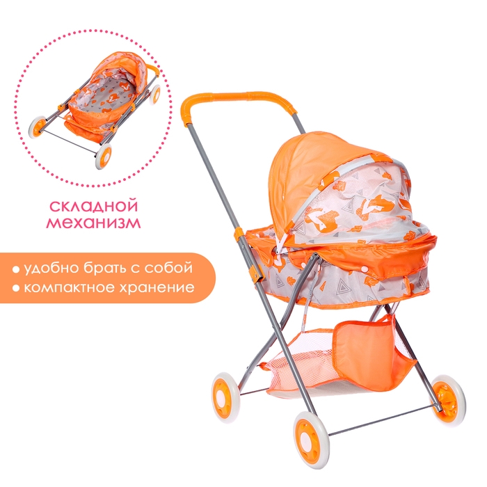 Коляска для кукол универсальная «Лисички», металлический каркас, с сумкой