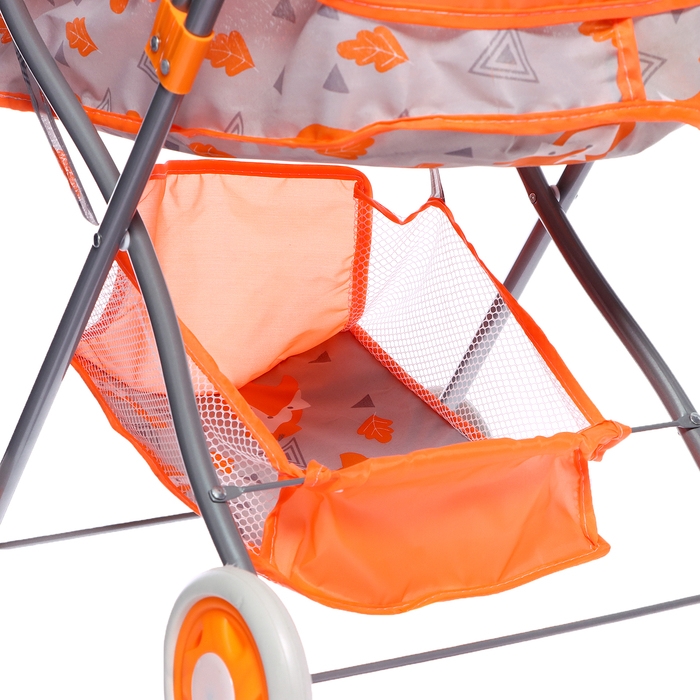 Универсальная коляска для кукол с ярким оранжевым цветом станет отличным аксессуаром для игр вашего ребенка. Металлический каркас, что обеспечивает надежность и долговечность. Коляска оснащена четырьмя колесами и прогулочной конструкцией, благодаря чему детские куклы могут легко «гулять» в любое время года.
