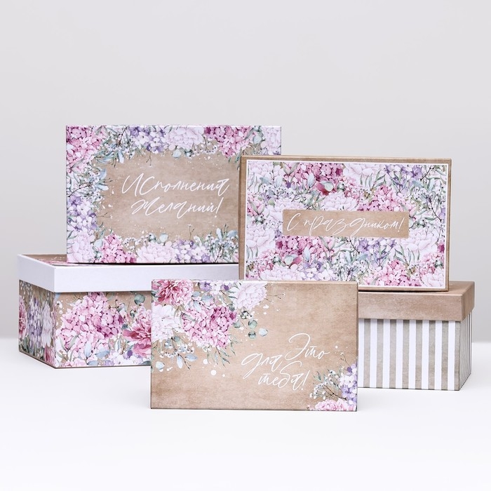 Набор шляпных коробок 5в1 "Цветочный", 20 × 20 × 20‒14 × 14 х 14 см