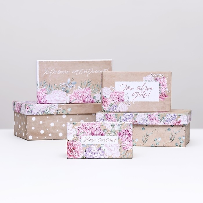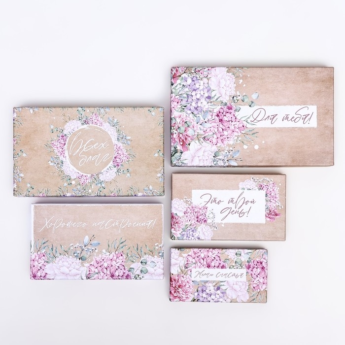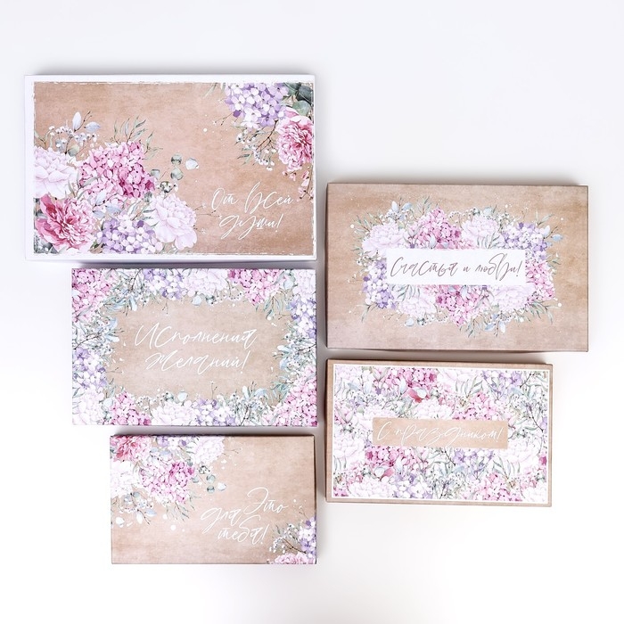 Набор шляпных коробок 5 в 1" Нежность" , 23 х23 - 15 х 15 см