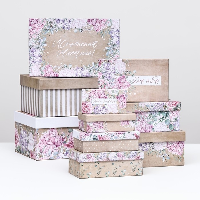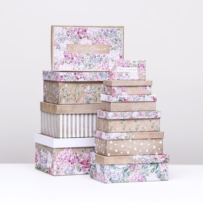 Набор коробок 10 в 1, упаковка подарочная, «Нежный», 12 х 7 х 4 - 32.5 х 20 х 12.5 см