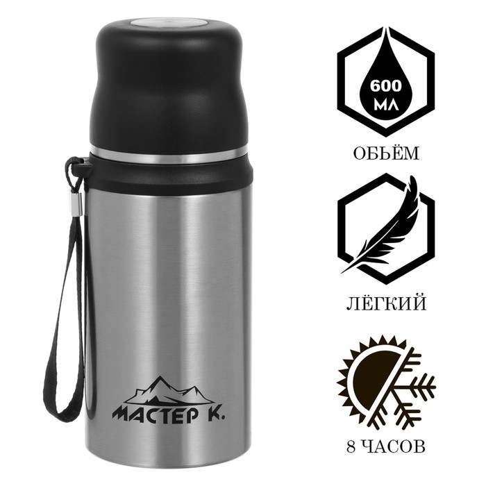 Термос, 600 мл, Гильза "Мастер К", с кружкой, сохраняет тепло до 8 ч