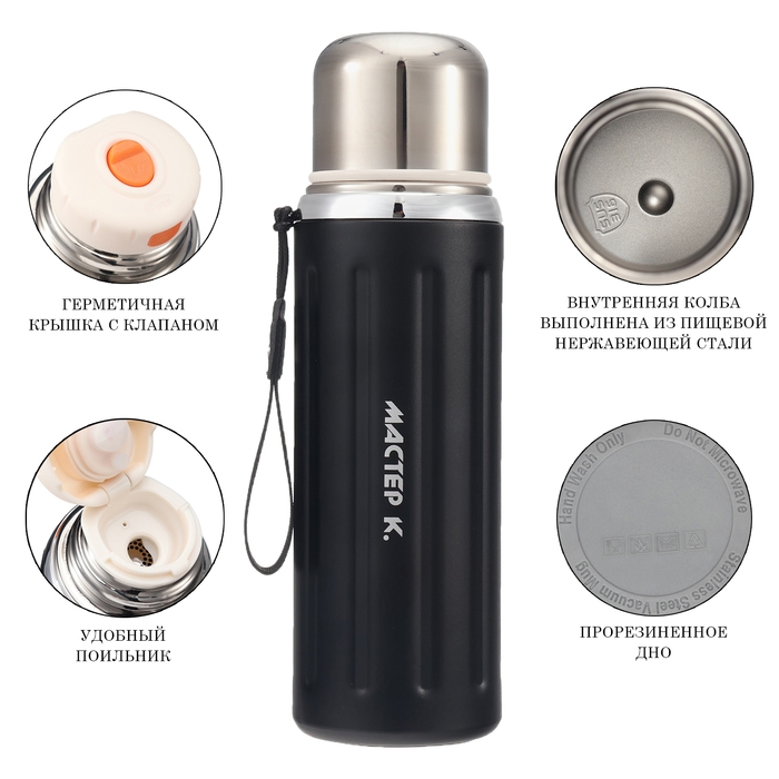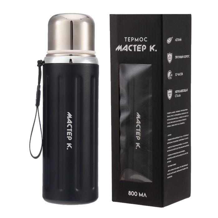 Термос, 800 мл, Гильза "Мастер К", с кружкой, сохраняет тепло до 12 ч