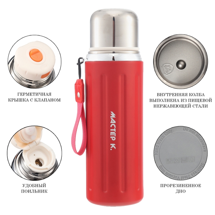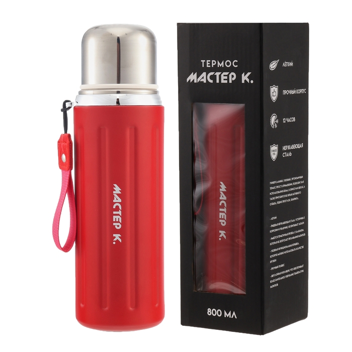 Термос, 800 мл, Гильза "Мастер К", с кружкой, сохраняет тепло до 12 ч