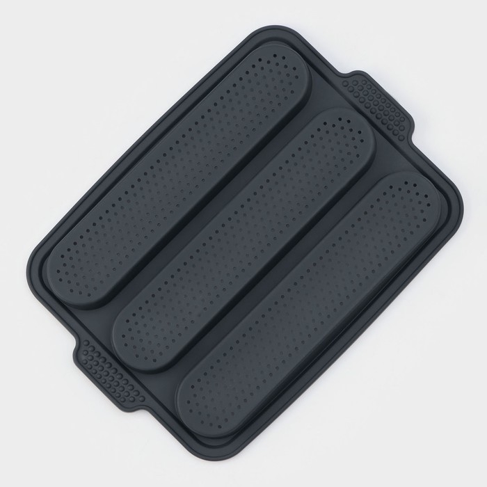 Форма для выпечки с перфорацией «Багет», силикон, 34,5×24×2,2 см, 3 ячейки (28×6×2 см), цвет серый