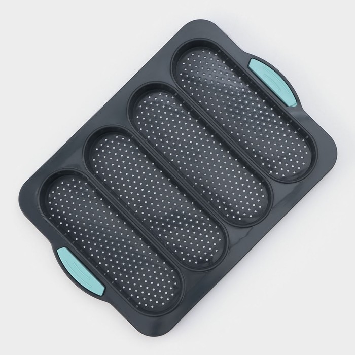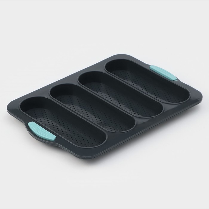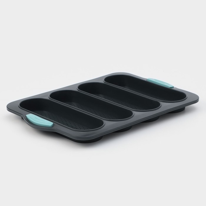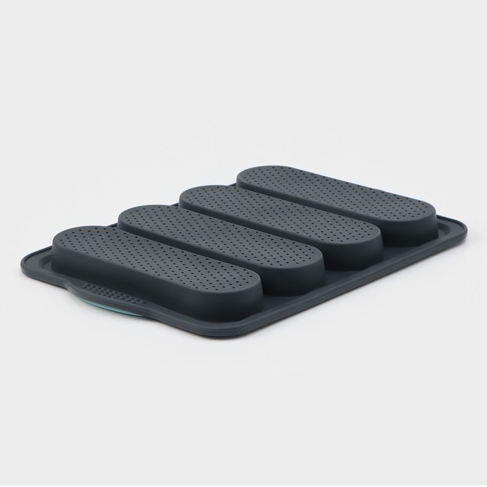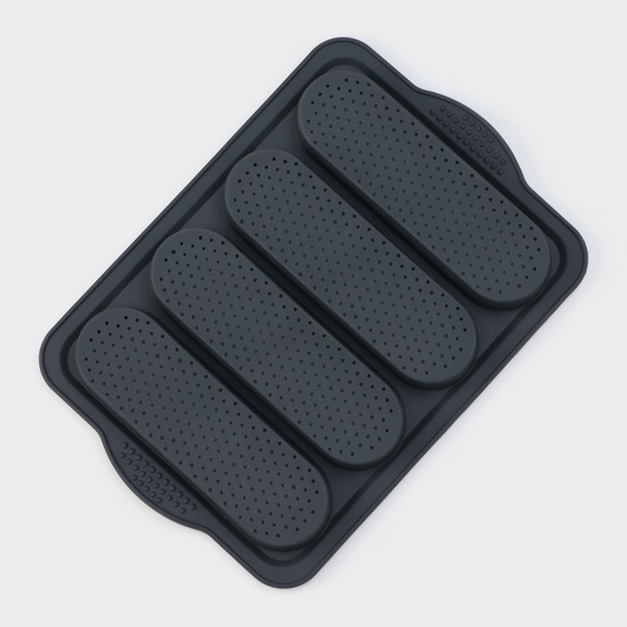 Форма для выпечки с перфорацией «Хлеб», силикон, 34,5×23,5×2,5 см, 4 ячейки (20×6,2×2,4 см), цвет серый