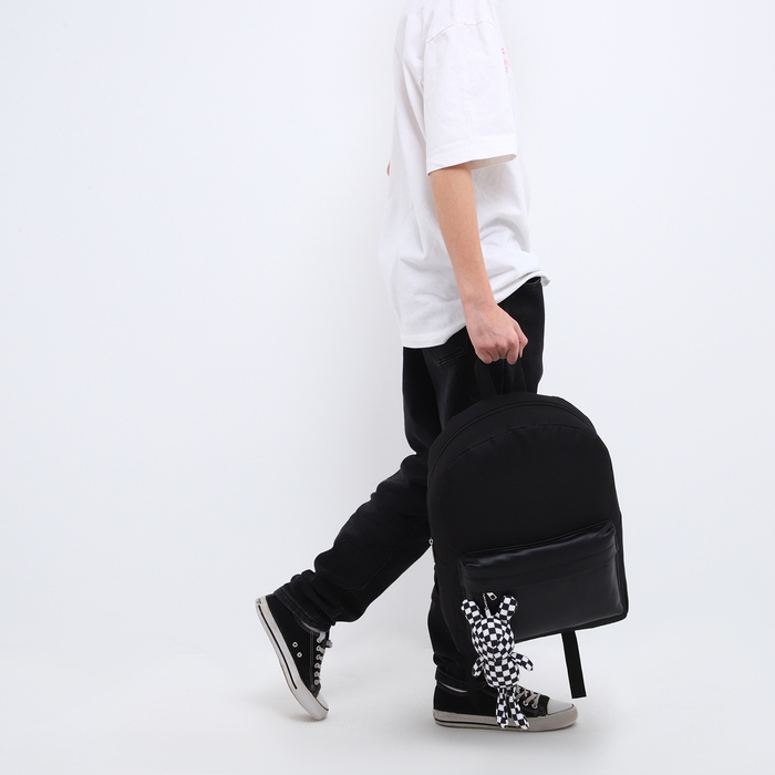 Рюкзак школьный текстильный с карманом кожзам, 38х29х11 см, цвет чёрный