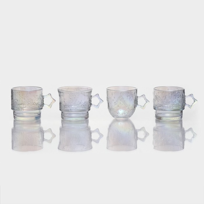 Набор кружек стеклянных «Космос», 4 предмета: 300/300/250/300 мл, цвет перламутровый