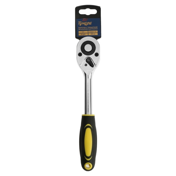 Вороток с трещоткой ТУНДРА, CrV, квадрат 1/2", 2К рукоятка, 24 зуба, 250 мм