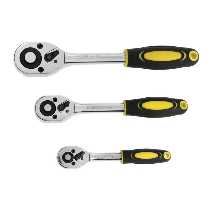 Набор воротков с трещоткой ТУНДРА, CrV, 1/2-3/8-1/4", 2К рукоятка, 24 зуба, 150-250 мм