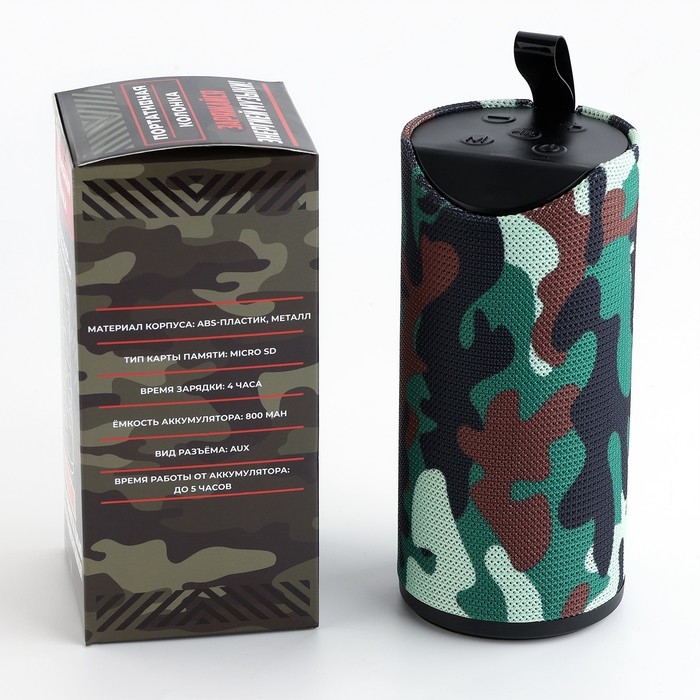 Портативная колонка Booms350, 7 Вт, 1200 мАч, подсветка, micro SD, хаки
