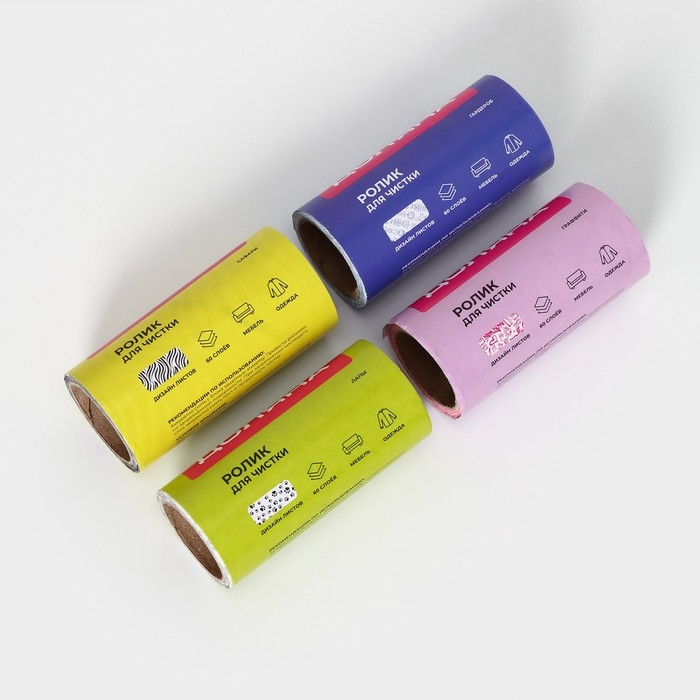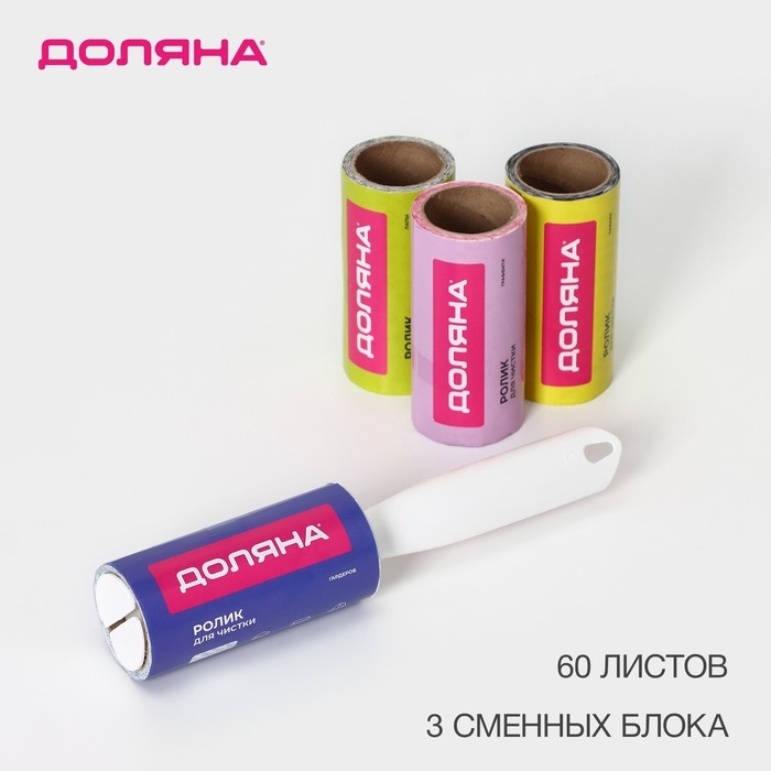 Ролик для чистки одежды Доляна, 60 листов + 3 сменных блока по 60 листов с рисунком