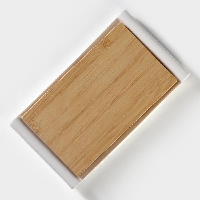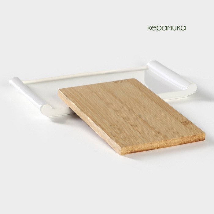 Блюдо для подачи фарфоровое с вставкой из бамбука BellaTenero, 25,5×14,5×2,3 см