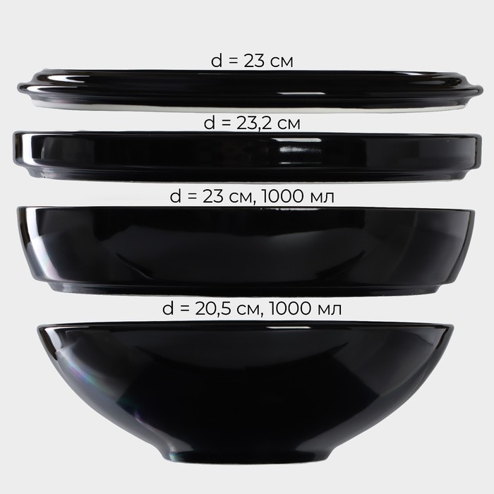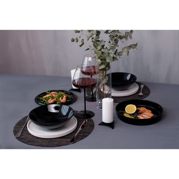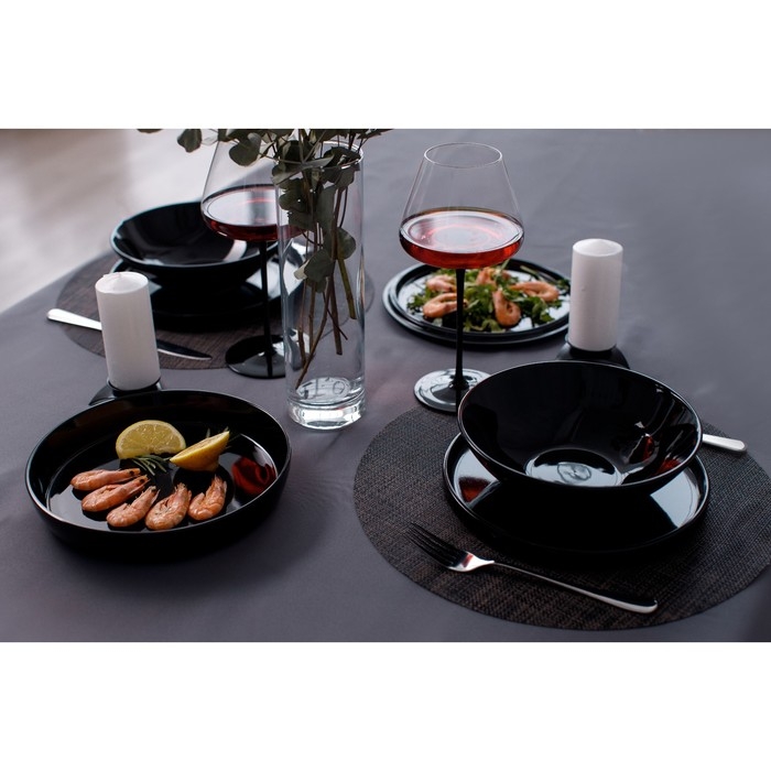 Набор фарфоровой посуды на 2 персоны Magistro La palla, 7 предметов: тарелка d=23 см, 2 тарелки d=23,2 см, 2 тарелки 1000 мл, 2 салатника 1000 мл, цвет чёрный