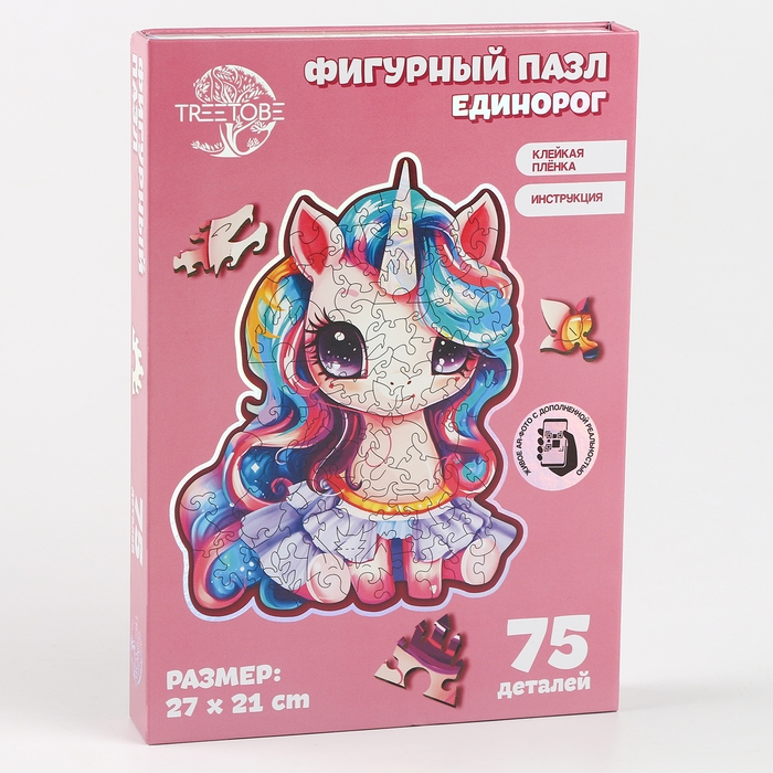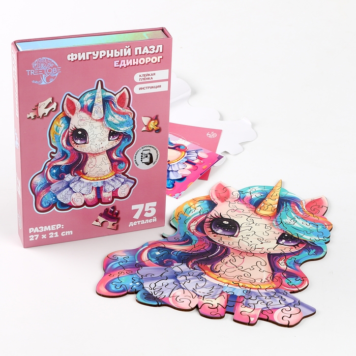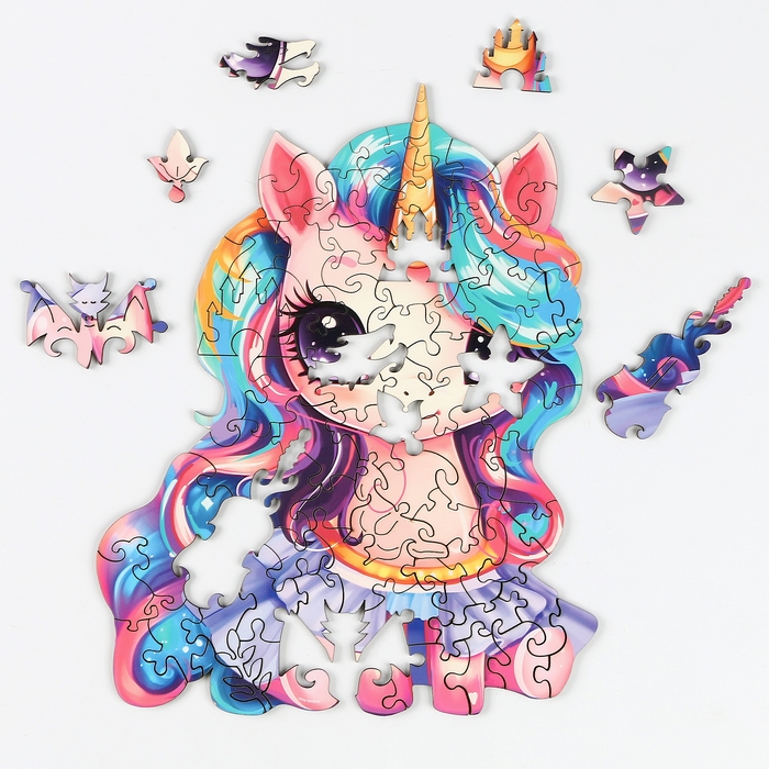 Пазлы деревянные фигурные детские «Сказочный единорожик», 75 элементов