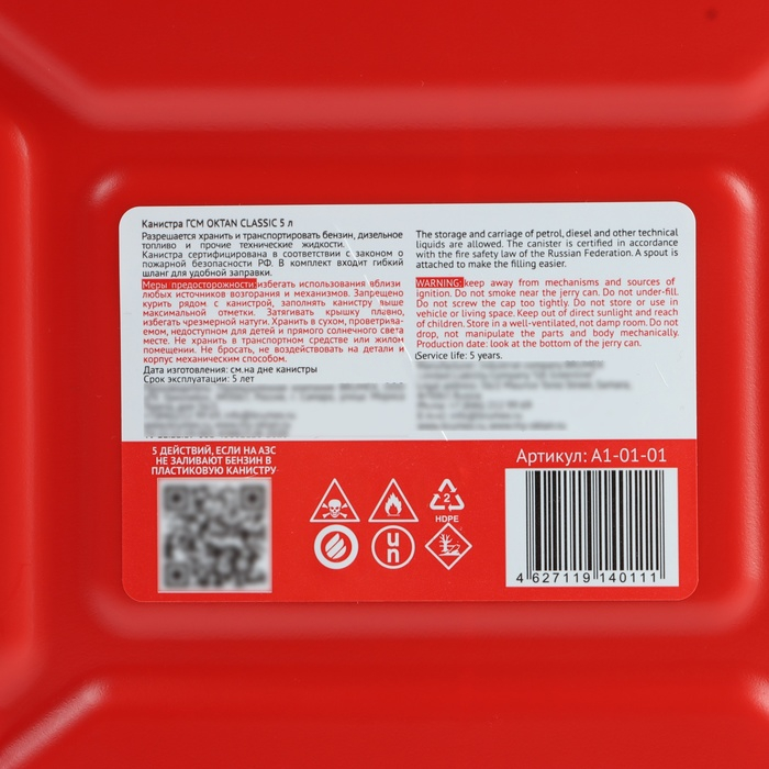 Канистра ГСМ Oktan CLASSIK, 5 л, пластиковая, красная
