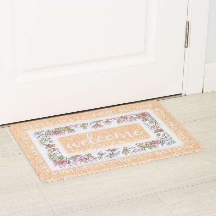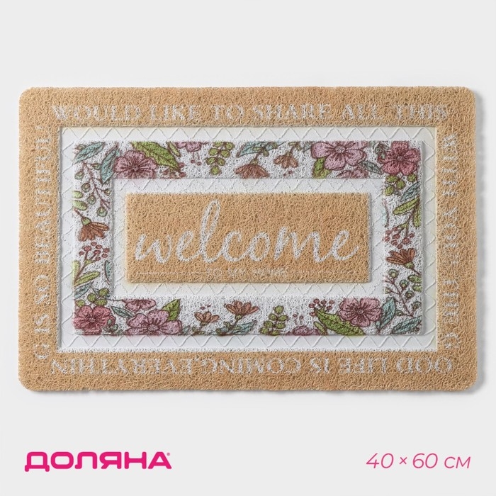 Коврик придверный Доляна Welcome, без окантовки, 40×60 см, цвет бежевый
